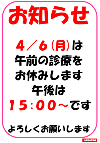 4/6(月)午前休診のお知らせ (0)