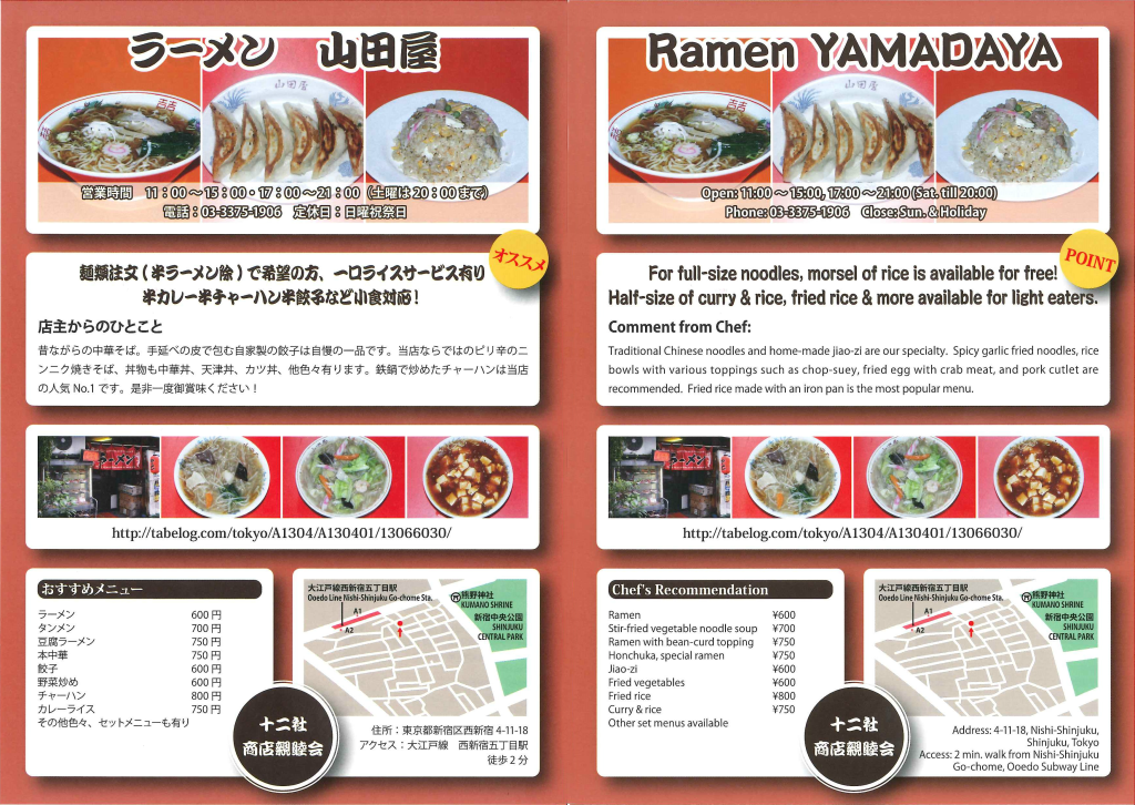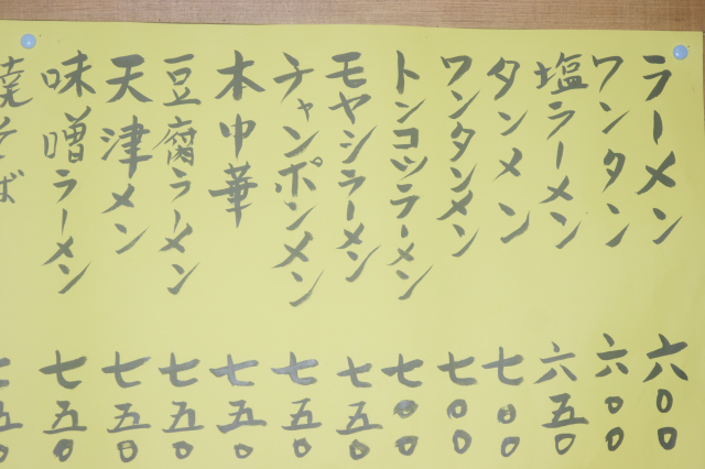 Traditional Chinese noodles and home-made jiao-zi are specialty. Spicy garlic fried noodles, rice bowls with various toppings such as chop-suey, fried egg with crab meat, and pork cutlet are recommended. Fried rice made with an iron pan is the most popular menu