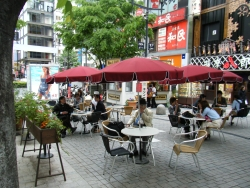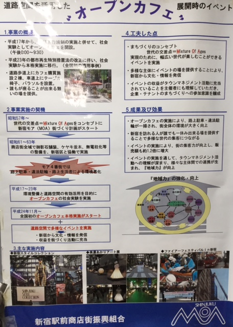 新宿モア4番街(新宿3丁目)では、道路上では全国で初めての「道路を活用したオープンカフェ」を常時開設している。