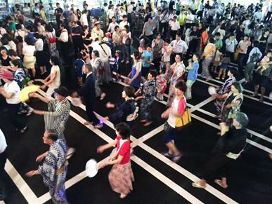 盆踊りには数千人の方々が集い、幾重もの踊りの輪が広がり、夏の楽しい思い出となっている。