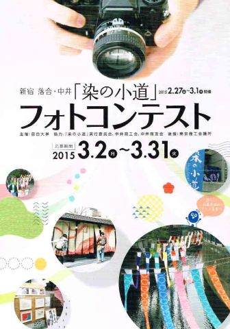 また、平成27年はこのイベントに目白大学がタイアップして、本学主催の「染の小道フォトコンテスト」なるイベントを開催しました。こちらは3月2日から3月31日までの期間で109件の応募があり、入選者には最優秀賞で2万円相当の賞品が贈られました。
