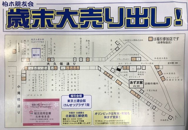 歳末大売出しを実施しております。実施期間は12月7日(木)~12月20日(水)までで豪華景品を用意しておりますので、皆様お正月の準備にお買い物にお越しいただけましたら幸いです。
