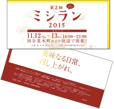 | イベント名 | ミシラン2015 [ URL: http://www.arakicho.com/info.html] |