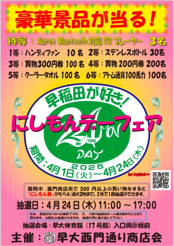 その商店街で今年も、2025年4月1日(火)の入学式から4月24日(木)まで、新入生歓迎を兼ねた「にしもんデーフェア」というイベントを開催します。