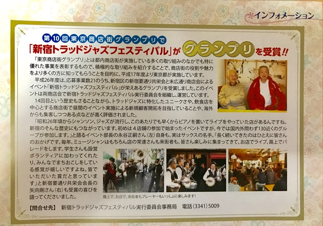 今週末は新宿の街で、熱いジャズの調べに酔いしれてみてはいかがでしょうか♪