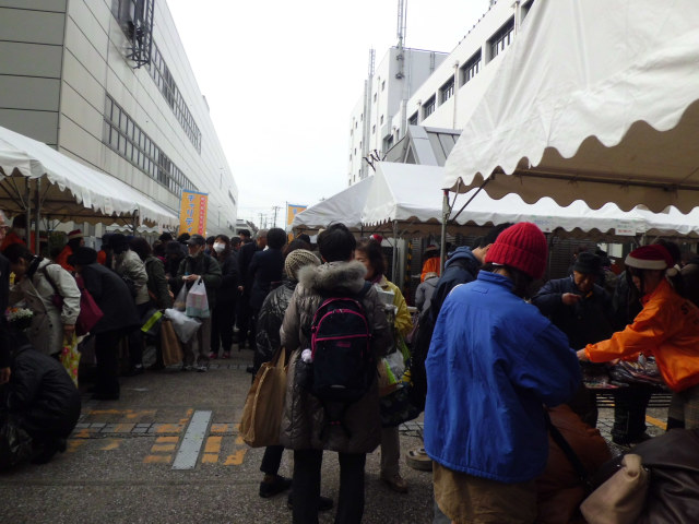 チャリティバザーは今年も大盛況!掘り出し物を探す人で賑わいました。 お気もちをいただいたつきたてのお餅も人気でした。