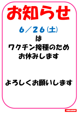 8/9(土)休診、8/13(水)午後休診のお知らせ