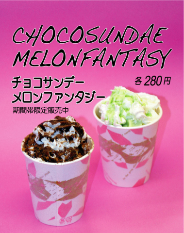 暑い日が続くようになってきたので、チョコサンデーとメロンファンタジーのTAKE OUT販売をはじめました。お持ち帰りでも、歩きながら食べてもOK、もちろん店内でもらーめんの〆にも是非どうぞ。どちらも280円にて販売しております。