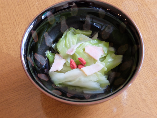 やわらかいキャベツと相性のよいベーコン。ピリッとする味がポイントです。