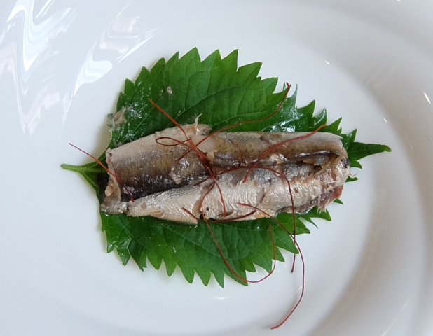 特製の醤油とオイルで漬けたサーディンです。