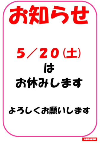 5/20(土)はお休みします。