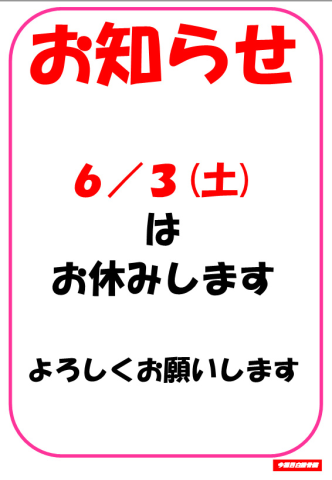 6/3(土)休診のお知らせ