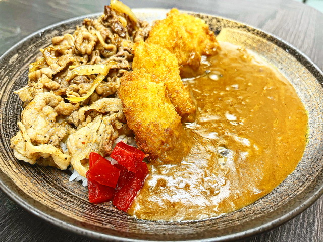 オリジナルポークカレーに焼肉とヒレカツをトッピングした食べ応えのあるスペシャルカレーセットが好評発売中です!!