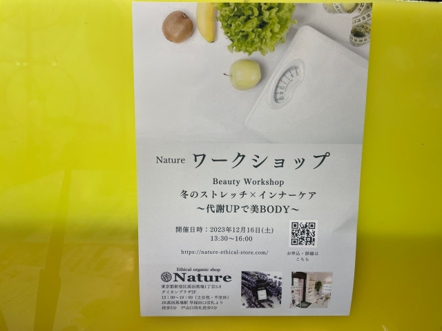 店頭に当店のショップカードを置かせていただいている Natureさんのところで定期的にワークショップが開催されています 寒い冬の到来に伴い、身体の筋肉が硬くなることや血流の悪化による老廃物の溜まりやすさが懸念されます。そのため、冬にこそ身体を動かす習慣を取り入れることが重要です。 第33回ワークショップでは、プロダンサーやインストラクター、美容アドバイザーと幅広く活躍されている講師の方に、姿勢を意識したストレッチやマッサージなどの基礎代謝を上げる方法を実践します。さらに、セルフメディケーションや栄養バランスの摂り方についても講義します。これらの体験や講義を通じて、日常生活に取り入れやすい健康的な習慣を身につけることが目指されています。皆さんの健康的なライフスタイルの向上に役立つと思います 詳しくはNatureさんのHPまで 当店のカウンターにもリーフレットをご用意しておりますので 気になる方は、ぜひお持ち帰りください #ワークショップ #健康的なライフスタイル #Nature #展示会 #スイス #CWS高田馬場 #ダホン #ジャイアント #BMC #自転車女子 #高田馬場 #新宿 #パンク修理 #自転車修理屋さん #クロスバイク女子 #電動アシスト自転車 #ロードバイク女子 #ウーバーイーツ #空気入れ無料 #パナソニック電動アシスト自転車修理サポート店 #パナソニック電動自転車 #ブリヂストンサイクル #アサヒサイクル #スマホホルダー #電子カタログ #防犯登録 |