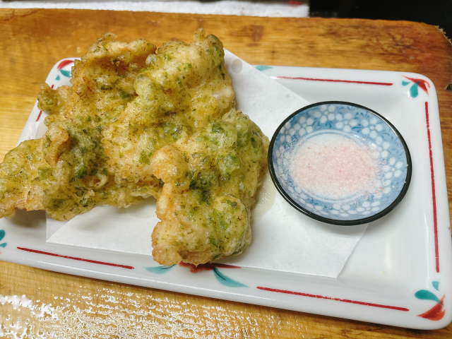 こんにちわ!とん八です ※3月16日(土)と30日(土)も営業致します。 本日の営業時間 16:30~22:00(店内・テイクアウト) 今日のメニューは まぐろ刺身 600 〆 さ ば 550 鶏肉の磯辺揚げ 400(写真) うどのきんぴら 380 特大 あじ開き焼 450(店) めぬけ西京焼 450 縞ほっけ焼き 400 菜の花のからしあえ 380 もつ煮込み 380 低温調理 レバ刺 680(店) ポテトサラダ 400 ハーフ 280 胡麻ネギしらす 400(店) ねぎ塩冷奴 300(店) 焼きそば 750 (ソース味又は塩味) 炒め物各種 680 (レバニラ・肉野菜・肉にら・ピーマン肉) 自家製 お新香 400 玉子焼き(プレーン) 380 玉子焼き 各480 (チーズ入り、納豆入り、にら入り、青のりとしらす入り) 串焼き 各1本110(テは6本以上から) (レバー。シロ。ハツ。タン。カシラ。ナンコツ) などです 宜しくお願いいたします! |