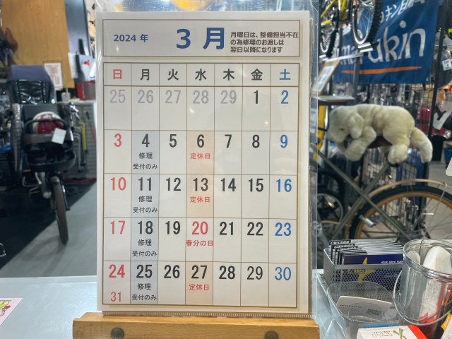 通常月曜日は、整備担当が不在の為 修理、納車のお渡は翌日以降になります お手数お掛けして申し訳ございません 3日(水)は春分の日で休日なので 営業いたします 皆様のご来店お待ちしております #営業日 #定休日 #CWS高田馬場 #自転車 #自転車屋 #自転車女子 #高田馬場 #新宿区ママ #パンク修理 #自転車修理 #クロスバイク女子 #電動アシスト自転車デビュー #パナソニック電動アシスト自転車修理サポート店 #自転車デビュー #補助輪 #キックバイク #変身バイク #ヤマネコバイク #ロードバイク女子 #パンク修理 #自転車修理 #ジャイアント #パナソニック電動 #ブリジストン #アサヒサイクル #スマホホルダー #電子カタログあります #防犯登録 |