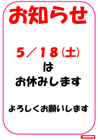 8/9(土)休診、8/13(水)午後休診のお知らせ