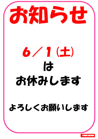 6/1(土)はお休みします。