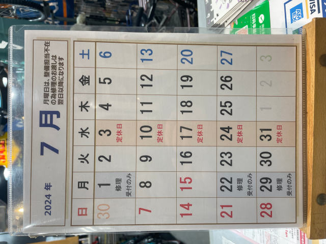 通常月曜日は、整備担当が不在の為 修理、納車のお渡は翌日以降になります お手数お掛けして申し訳ございません 8日(月)は修理も致します 15(月)は祝日の為10時開店で 修理もいたしますので ご来店お待ちしております