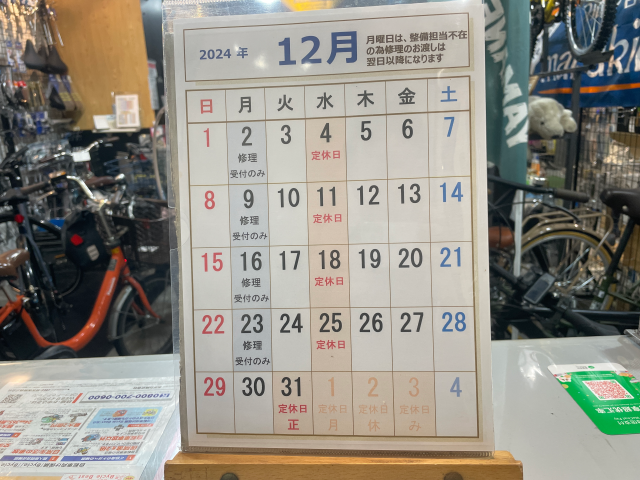 早いものでもう12月ですね 12月の営業日のご案内です 通常月曜日は、整備担当が不在の為 修理、納車のお渡は翌日以降になります お手数お掛けして申し訳ございません 30(月)は年内最後の営業の為 修理も致しますので ご来店お待ちしております 尚新年は4日(土曜日)より営業いたします 詳細は後日こちらにアップさせていただきますので ご来店の際は営業日、修理可能日を ご確認の上ご来店ください #cws高田馬場 #cws高田馬場 #サイクリング #プレミアム付商品券 #mtb #cinelli #TIME #自転車修理 #自転車 #定休日 #自転車屋 #自転車デビュー #アサヒサイクル #パナソニック電動アシスト自転車修理サポート店 #空気入れ無料 #ブリヂストンサイクル #ロードバイク #パナソニック電動アシスト自転車 #パンク修理 #ジャイアント #パナソニック電動自転車 #新宿 #クロスバイク通勤 #クロスバイクの旅 #ファイテン #新宿区 #マウンテンバイク #ガラスコーティング #高田馬場駅 |