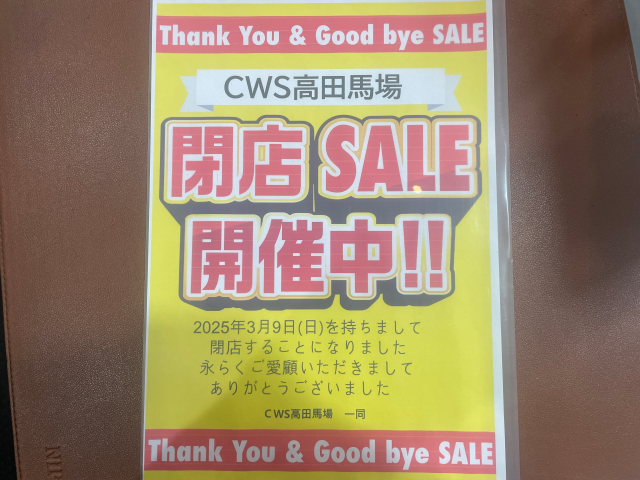CWS高田馬場 閉店のお知らせ
