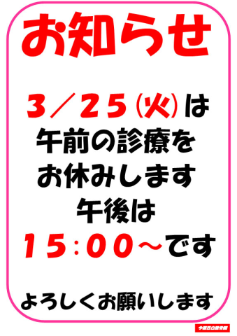8/9(土)休診、8/13(水)午後休診のお知らせ
