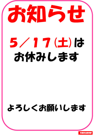5/17(土)はお休みします。