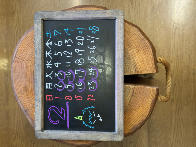 2月の定休日です。 |