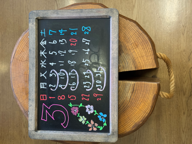 3月の定休日です。