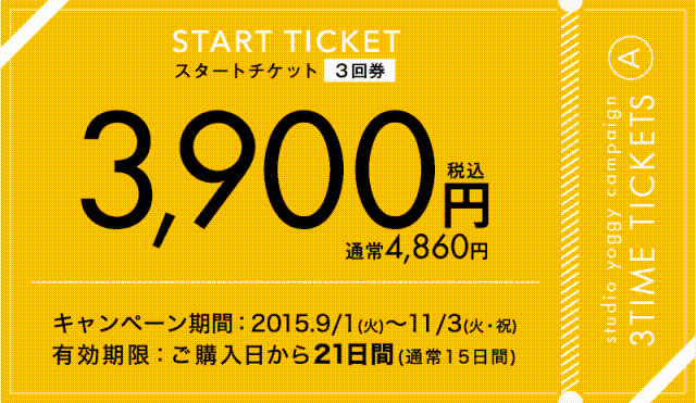 ヨギーのクラスをまずは3回お試しできるスタートチケットが