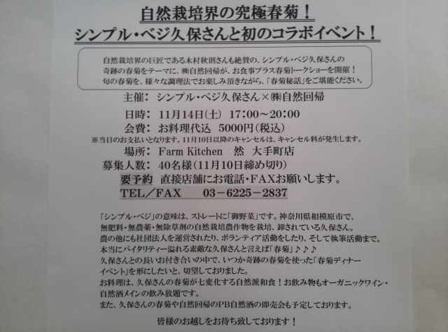 当店の契約農家のKUBO農園の力作でもある「春菊」の季節となりました。先週から豊富に入荷となりましたが、大量にお求め頂けるお客さまがおられ、サラダでもおいしく召し上がれます。 生花部では、苗物の「パンジー」「ビオラ」「ガーデンシクラメン」などウィンターシーズンのお花が入荷しております。 これからは、「ポインセチア」「シクラメン」などお歳暮に最適な商品が、続々入荷してまいりますので、是非、ご来店下さる様、お待ちして居ります。 地方発送は、随時承ってお居りますので、お歳暮・記念日などお花を贈ってみては如何でしょうか? |