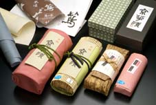 手作りの化粧箱や竹皮包み、孟宗竹割蓋、風呂敷など、