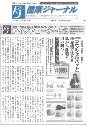 発明学会 事務局松野 『健康ジャーナル』に連載開始! 第2回目は、池田安江さんの乳がん経験者用パット『エンジェルパッド』 美容、健康、ヘルスケア業界の一流誌『健康ジャーナル』にて連載を開始! こういう業界紙に掲載されると、「客観性」がある第三者が認めた評価なので、発明家の評価も、商品の価値や評価も上がるんです。 美容、健康、ヘルスケア関連の商品をお持ちの方! 松野が全部原稿を書くので、誌面に載るせっかくのチャンスを、活かしてくださいね! 販売中の方はもちろん、試作品ができていて、売込中の方も、発明学会の会員番号(KO~)を明記の上、事務局松野(life@hatsumei.or.jp「件名:健康ジャーナルの件」)まで、商品詳細をご連絡下さい! 発明学会ネットショップにも出品して、宣伝と販売の相乗効果を狙って、ガンガン行こう! |