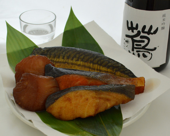 京華漬にした魚介類を時間をかけて、じっくり燻しました。
