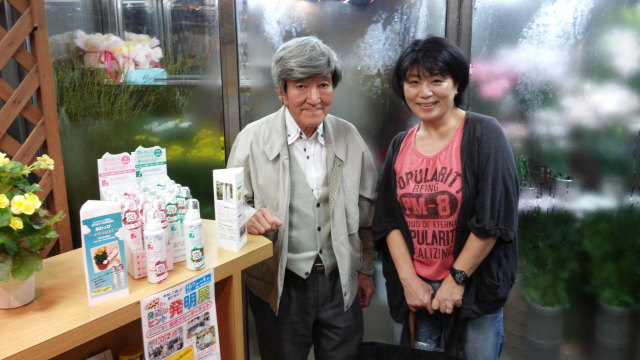 泡の肥料「あわっぴ」委託販売のお願いに同行してきました! 先日の発明フリーマーケットに参加した、ムースタイプ肥料「あわっぴ」発明者の山本理恵さん。 帰り際、「あわっぴ」を、発明学会近くの花屋に置いてもらうため、これから飛び込み営業に行くって言うじゃありませんか! その、やる気に感動しちゃって、懇意にしている、発明学会と同じ余丁町町内会の花屋さん「フローリスト セブン」の只木社長の元へ、一緒に同行! 一緒にお願いしたら、結果はOK! というわけで、今、発明学会の並びの花屋さん「フローリスト セブン」に行くと、発明学会会員の山本さんの「あわっぴ」が購入できます。 ワンプッシュで肥料やりができる、植物好きには大好評の発明品です。 興味のある方は、ぜひ同店へお出かけください。 只木社長ありがとうございました! |