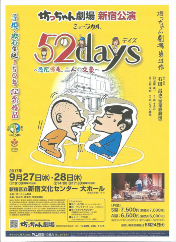 夏目漱石の拠点であったこの地に記念館がオープンします。 漱石山房所在地 新宿区早稲田南町7番地 漱石が生まれ育ち、その生涯を閉じたまち新宿区には、漱石ゆかりの地が数多くあります。漱石が生まれた現在の新宿区喜久井町という町名は、当時このあたりの名主であった漱石の父・直克が、夏目家の家紋「井桁(いげた)に菊」にちなんで名付けたものです。 また同じように、漱石の生家前にある坂を「夏目坂」と名付けたエピソードも残っています。さらに、漱石が亡くなるまでの約9年間を過した「漱石山房」と呼ばれた早稲田南町の家の書斎からは、数々の名作が生み出されました。 漱石誕生の地漱石終焉の地 漱石の小説や随筆には新宿の町の名前が数多く使われており、現在も区内に残るお寺や神社の名も作品の中に登場しています。一方で漱石の日記や手紙には、漱石が神楽坂に買物に出かけたり、神田川に花見に行ったりしたことが記されており、新宿が日常を過した町でもあったことがわかります。新宿は漱石にとって生まれ故郷であり、作品を生み出した場であり、日常生活の場であり、そして人生の最期を迎えた場所だったのです。 開館を記念しての52days 坊っちゃん劇場 - BOTCHAN THEATERの公演や早稲田ビール夏目漱石ラベルの販売なども実施します。皆様ぜひご来場下さい。 http://soseki-museum.jp/modules/info/index.php?action=PageView&page_id=16 |