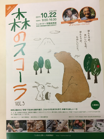 「森のスコーラVol.3」が、来る10月22日(日)に 神奈川県相模原市緑区吉野407にて開催されます。 【抽選券付きチラシゲット可能店8】 フローリストセブン(当店) お花とシンプルベジ「お野菜」の店 新宿区余丁町にあります♪ ぜひ お近くに行った際は お越しください~♪ 当日は、「奇跡のリンゴ」で有名な木村秋則先生と アルケッチ―ノの奥田政行オーナーシェフ お二人のスペシャルトークイベント(要予約)をはじめ 自然に囲まれた学校で生まれる食や遊びからの生き方 を学び・体験できる楽しい一日を「森のスコーラ」で 是非お楽しみ下さい。 詳しくは、当店にてパンフレットをお渡し致します。 お気軽にご遠慮なくお立ち寄りくださいませ。 |