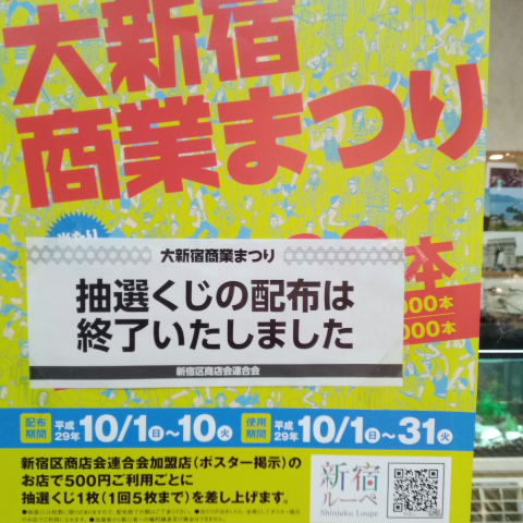 新宿まつりのくじの配布が終了してしまいました…m(_ _)m