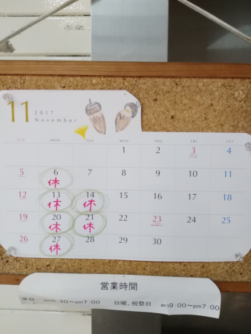 11月の定休日です