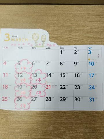 3月の定休日です。