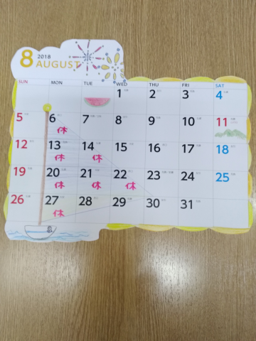 8月の定休日と夏休みです。