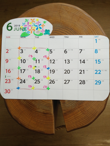 6月の定休日です。