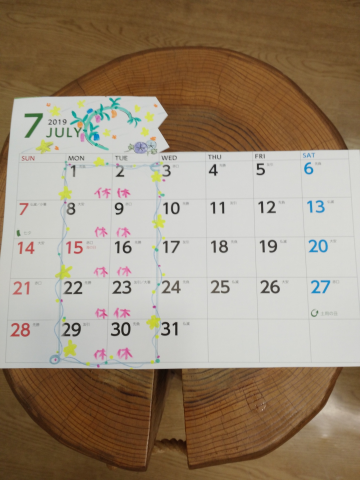 ちょっと遅くなりましたが、7月の定休日です!