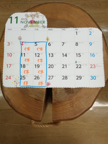 11月の定休日です