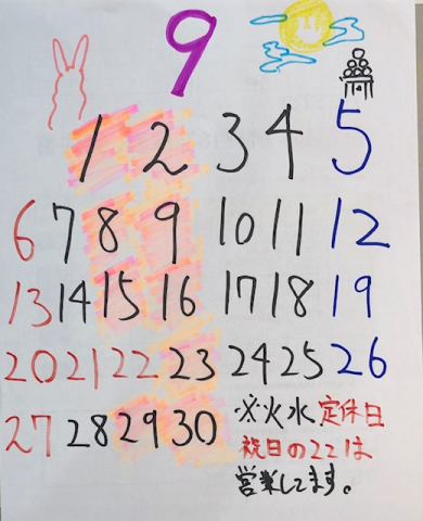 9月の定休日