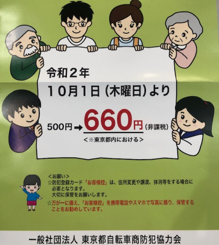 #防犯登録値上げ