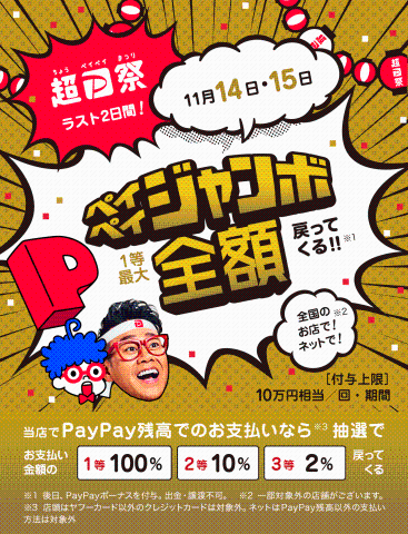 14日~15日限定のペイペイお得キャンペーンが実施されます!!